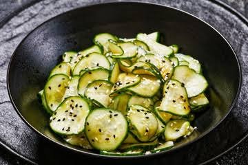Ingredientes 2 pepinos japonês bem fininhos 1/2 colher (chá) de sal 3 colheres (sopa) de vinagre de arroz 1 colher