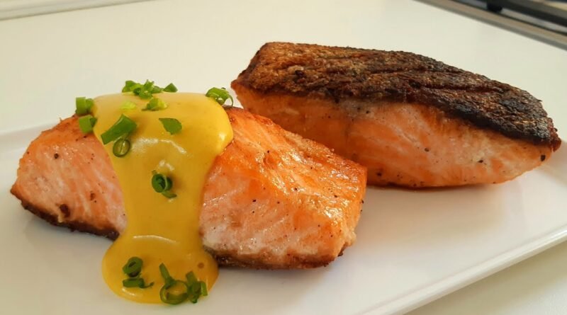 Misture mel, mostarda e limão. Tempere o salmão e grelhe 3–4 min de cada lado. Pincele o molho por cima no final.